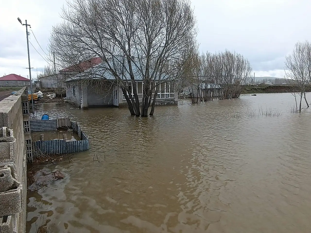 Ağrı’nın Patnos ilçesinde etkili olan sağanak yağış ve kar erimeleri sonucu dere yatakları taşarken, bazı evler su altında kaldı.